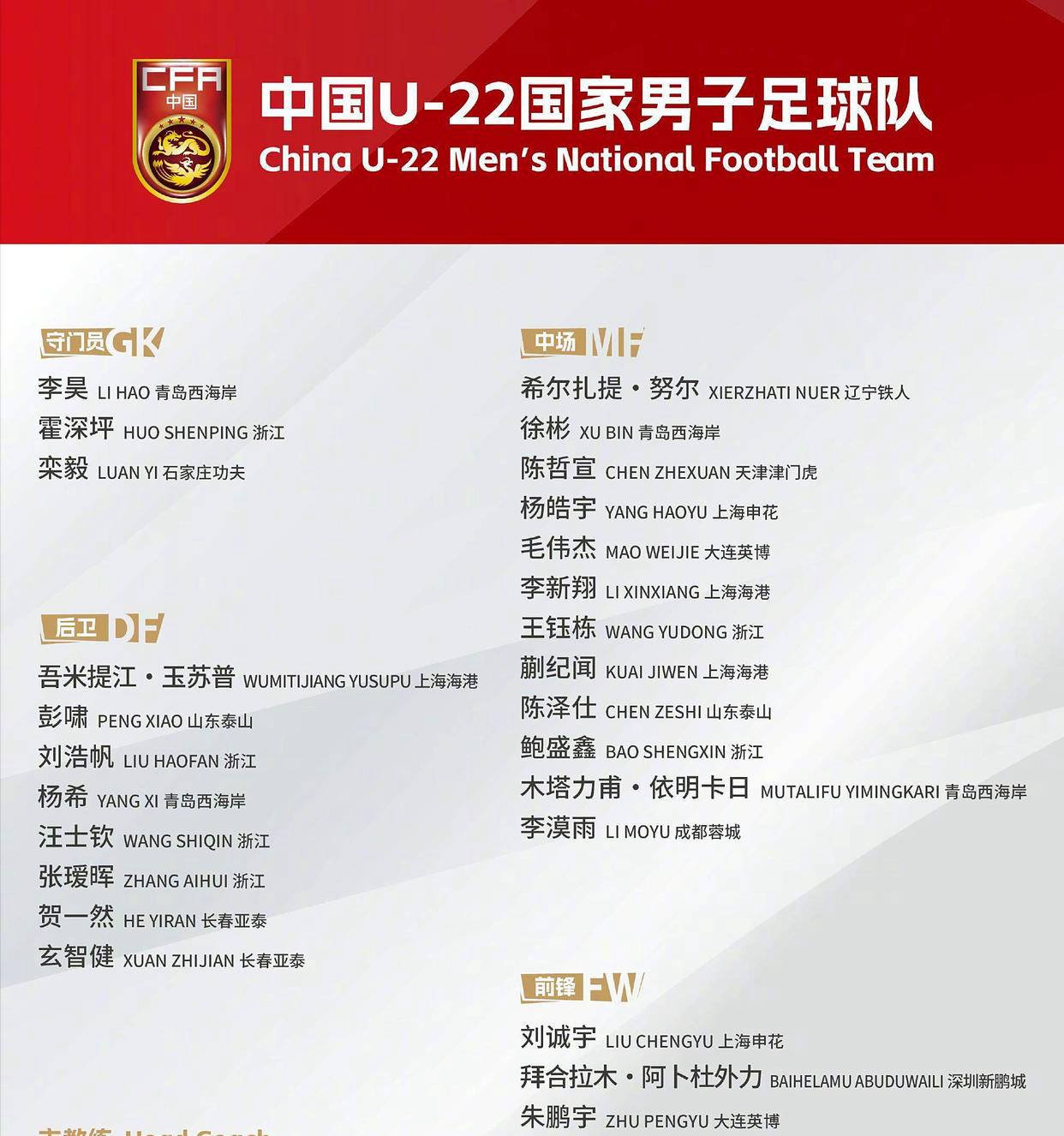 本次U22男足的名单并非最强阵容,受中甲停赛影响,包括向余望、李镇全等多名球员未能入选。在大连英博方面,朱鹏宇和毛伟杰再度入选,两人可谓是本赛季最忙碌的队员。由于国家队任务提前结束,U22男足成为焦点关注对象。两位球员几乎未休息便参加了今年内的所有集训。在此前的U23亚洲杯预选赛中,朱鹏宇曾攻入两球,毛伟杰也表现出色。期望他们发挥出色,并成功入选明年正赛名单。