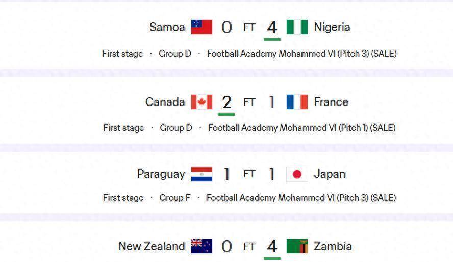 D组的情况有点意思。 加拿大和法国队携手出线,加拿大还是小组第一。 E组的西班牙和哥伦比亚都是强队,西班牙三战全胜,哥伦比亚也顺利晋级。 F组的日本队2胜1平拿到小组头名,巴拉圭队跟在后面。