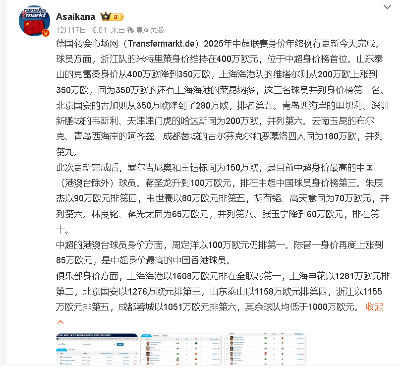 2026世界杯赛程,世界杯球队,足球预测,世界杯投注,赛事直播家人们,大家好!我是黄强歪谈体育,专注体育,今天与大家聊一下中超球员身价这个话题。最近德转更新的中超球员身价表一出,那可真是炸开锅!米特里策稳坐400万欧宝座,依旧是中超身价“一哥”,可我们中国球员这边,那变化就跟坐过山车似的,刺激得很呐!为什么这样说?