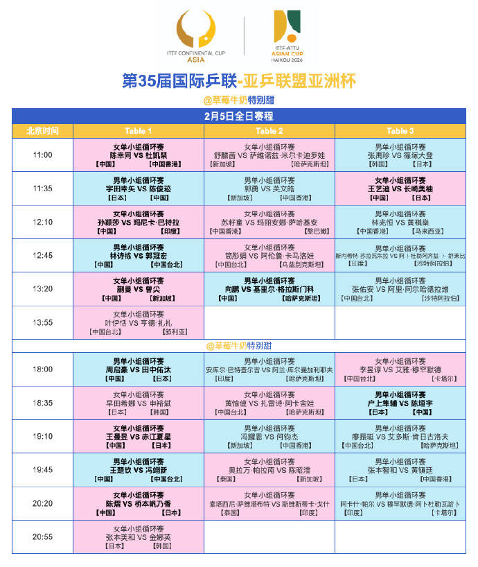 今天,率先出战的是世界冠军陈幸同,而世界第一孙颖莎本轮的对手是印度怪球手玛尼卡-巴特拉。女单小组循环赛第二轮的具体对阵和比赛时间为:陈幸同VS杜凯琹(11:00)、王艺迪VS长崎美柚(11:35)、孙颖莎VS玛尼卡-巴特拉(12:10)蒯曼VS曾尖(13:20)、王曼昱VS赤江夏星(19:10)、陈熠VS桥本帆乃香(20:20)