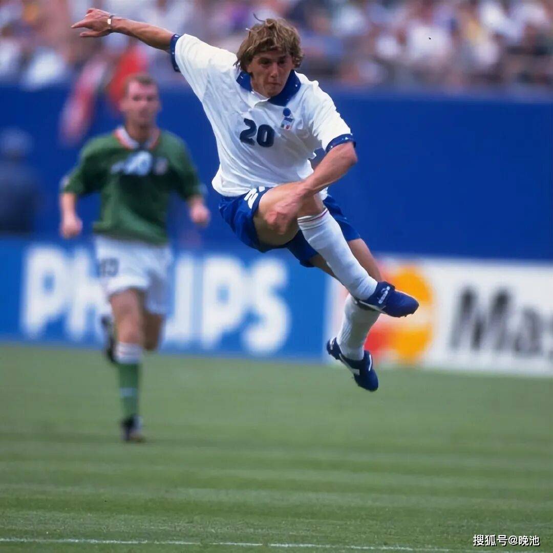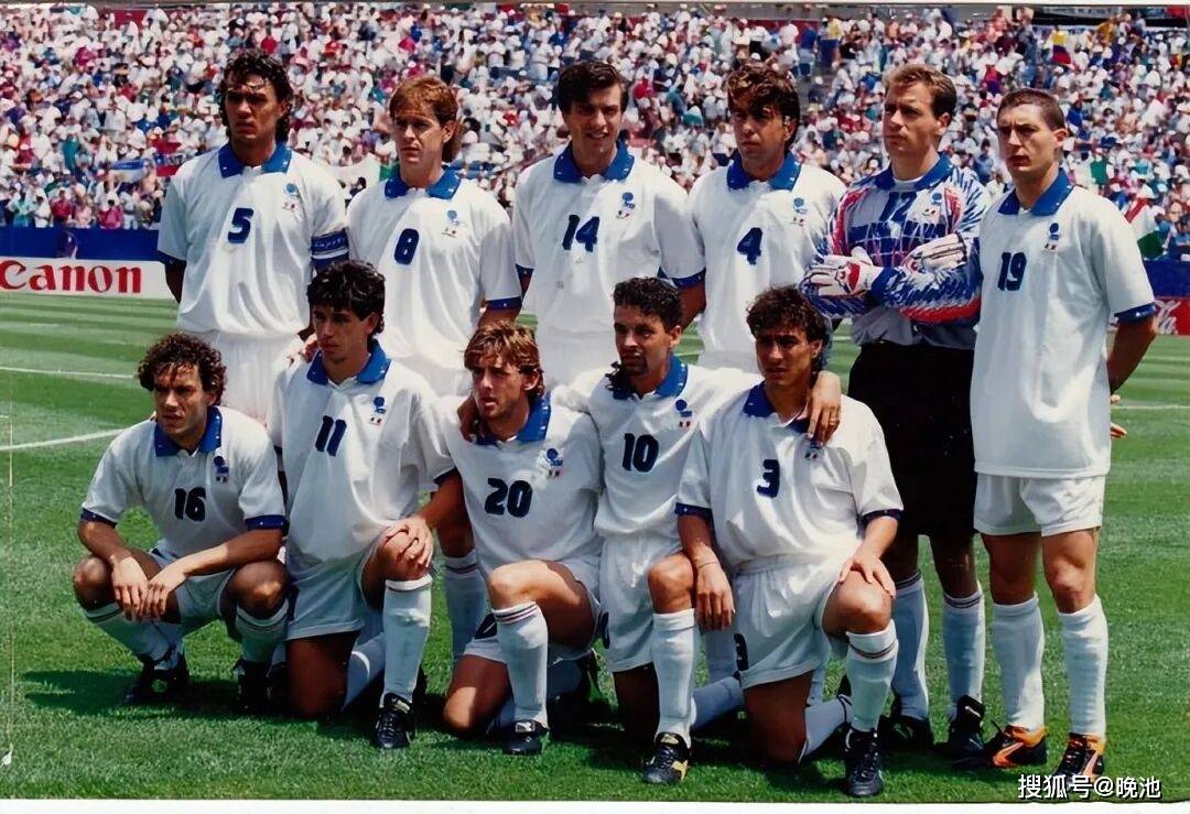 1994年世界杯上的蓝衣军团在慢热后渐入佳境,在艰难的从小组出线后,凭借巨星巴乔的神奇发挥一路过关斩将杀入决赛,可惜在决赛中点球大战惜败巴西。