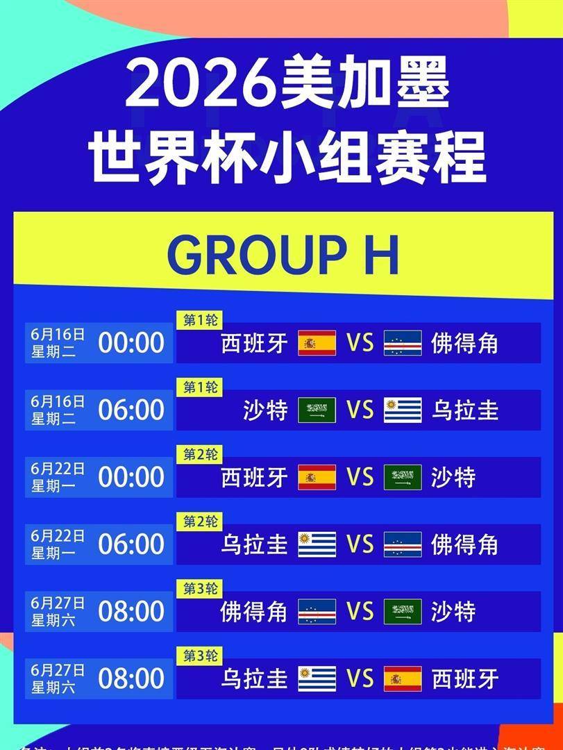 西班牙足协的这一选择,并非随意为之。 从竞技角度分析,伊拉克队相比中国队,具有更明确的战术模拟价值。 西班牙队在2026年世界杯中被分在H组,同组对手包括乌拉圭、沙特阿拉伯和佛得角。 其中,沙特阿拉伯是来自西亚的球队。 伊拉克同样作为西亚球队,在技术风格、身体对抗节奏上,与沙特更为接近。 选择伊拉克热身,能帮助西班牙队更好地适应和准备与沙特的比赛。