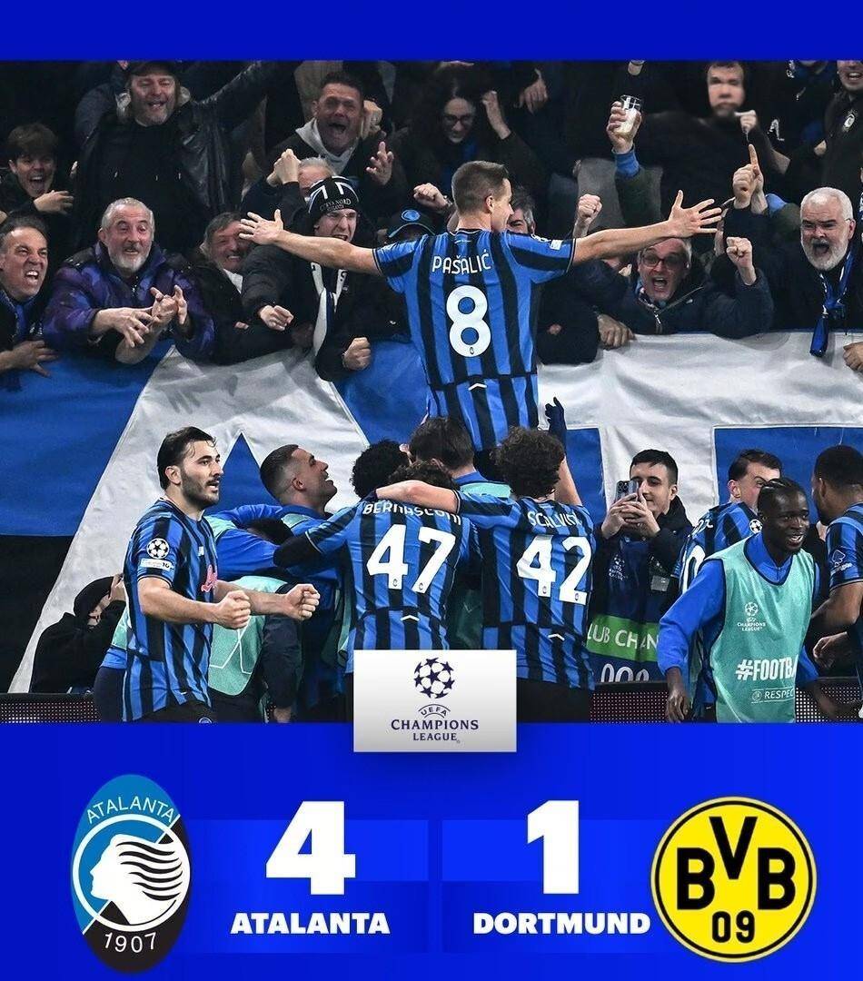 第98分钟,萨马尔季奇顶住压力主罚点球命中,亚特兰大4-1锁定胜局,以总比分4-3完成惊天逆转,晋级16强。 全场比赛,控球率仅44%的亚特兰大用15次射门9次射正的高效,击败了控球占优但只有7次射门的多特蒙德。 亚特兰大因此成为本赛季唯一晋级欧冠16强的意甲球队。