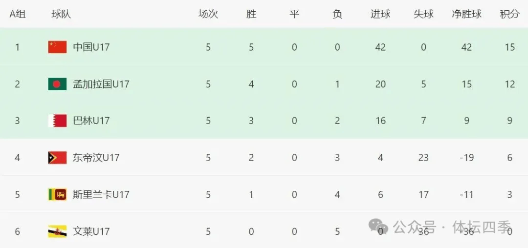 前四轮过后,两队都是保持全胜积12分,中国队依靠净胜球优势力压孟加拉国稳居小组第一。